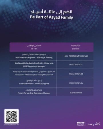 انضم إلى عائلة أسياد لتكون جزءًا محوريًا من رحلة تعزيز مكانة سلطنة عُمان كمركز لوجستي عالمي، عبر الرابط التالي: