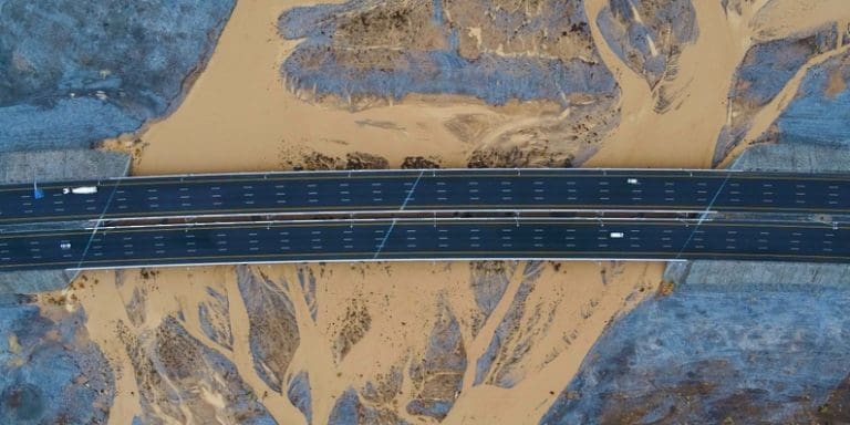 Aerial photographs show wadis overflowing in the wilayats of Suhar and Shina as a result of weather conditions affecting the Governorate of North Al Batinah.