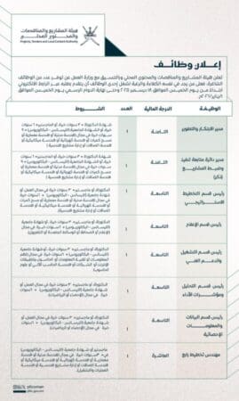 أعلنت هيئة المشاريع والمناقصات والمحتوى المحلي وبالتنسيق مع وزارة العمل، عن توفر عدد ( 8) وظائف شاغرة.