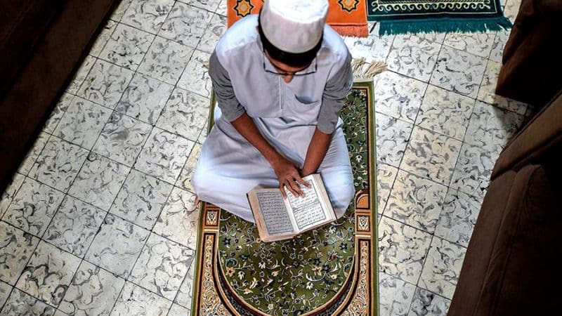 مسلم يقرأ القرآن بمنزله في بنما سيتي، عاصمة بنما، قبل الإفطار