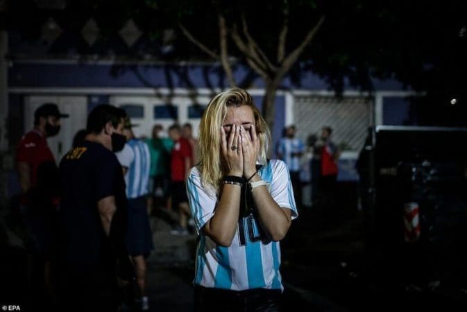 وفي العاصمة، حمل المشجعون أكاليل الزهور بالقرب من النادي السابق لمارادونا، بوكا جونيورز، فيما تجمع آخرون في حي سان أندريس الذي عاش فيه وفي مدينة لا بلاتا التي عمل فيها مؤخرا لتدريب خيمناسيا ئي اسجريما.