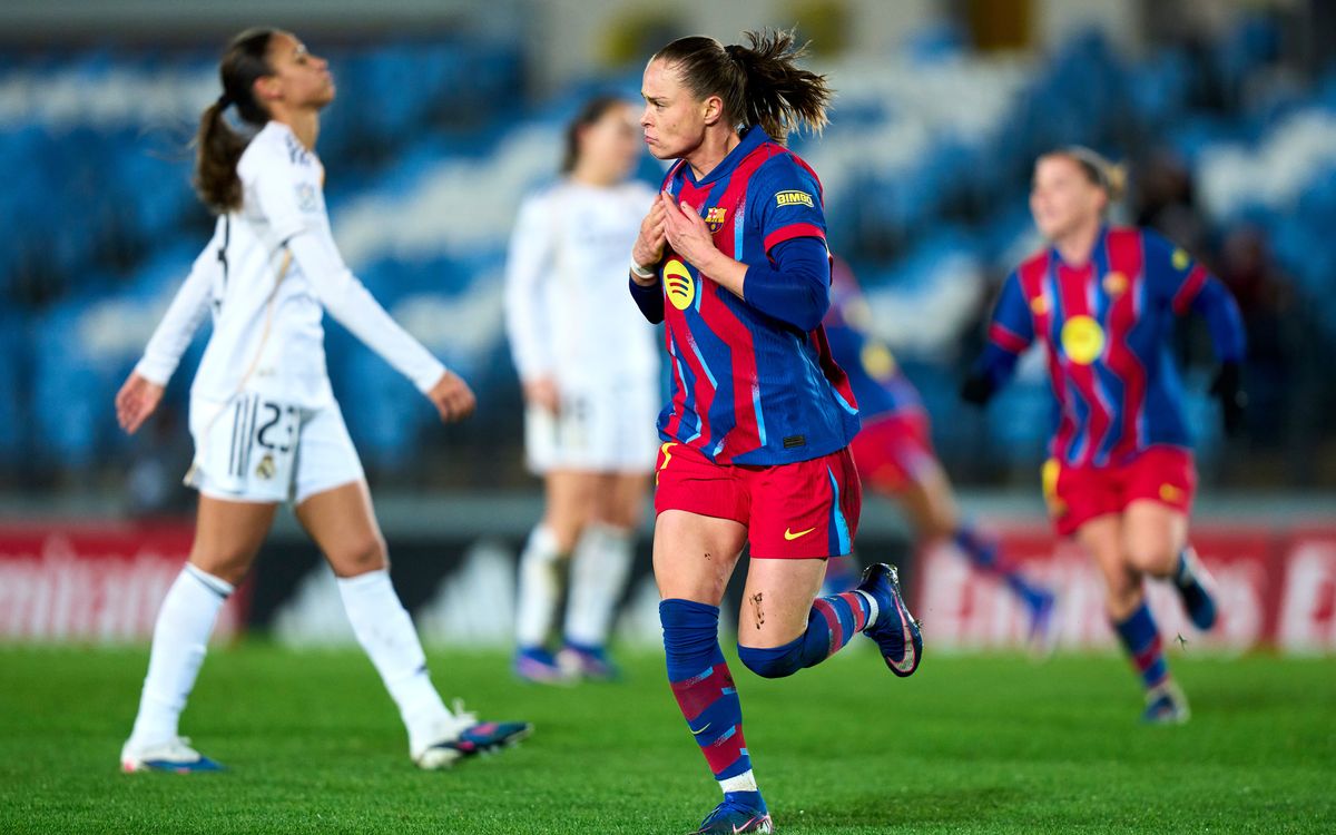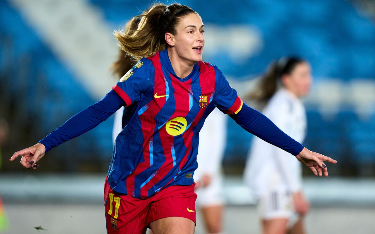 سحق برشلونة غريمه ريال مدريد في كلاسيكو السيدات (4-0)، اليوم الخميس، ضمن منافسات ربع نهائي كأس ملكة إسبانيا.