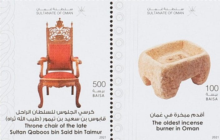 إطلاق أربعة طوابع بريدية منها كرسي الجلوس للسلطان الراحل “صور”