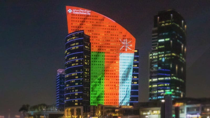 شاهد.. كيف تزينت معالم خليجية بالعلم العُماني بمناسبة العيد الوطني الـ51
