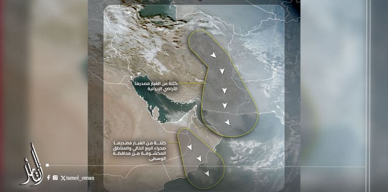 سلطنة عمان تتأثر بكتل غبارية قادمة من إيران وصحراء الربع الخالي