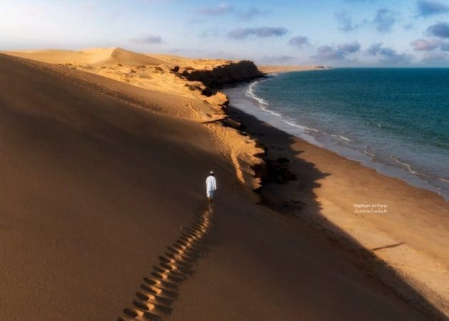 شاهد امتزاج الرمال الذهبية مع البحر في توثيق رصده مصور عماني