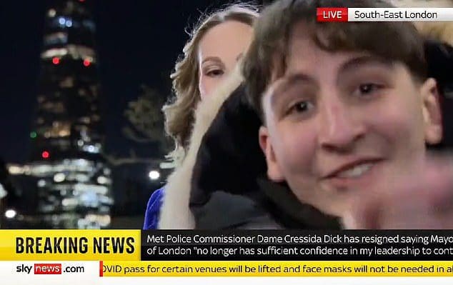 تعرضت مراسلة سكاي نيوز كيت ماكان لموقف محرج بسب شاب على الهواء مباشرة في خضم تقرير عن استقالة مفوض شرطة العاصمة البريطانية كريسيدا ديك في وقت سابق من اليوم.