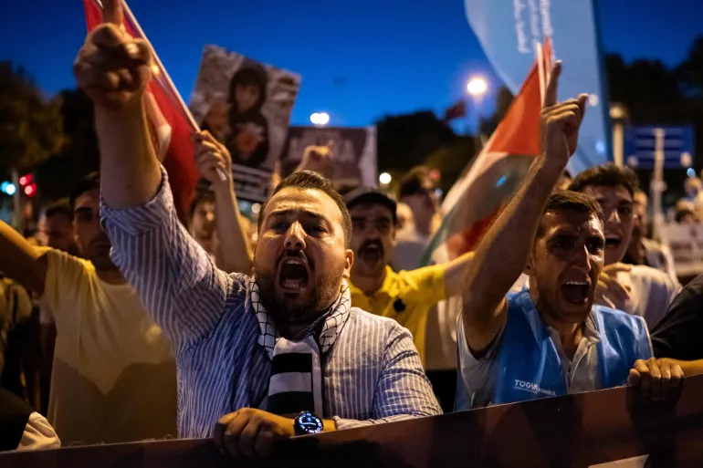 ففي اسطنبول، تجمّع حشد كبير أمام مسجد الفاتح، ملوّحين بالأعلام التركية والفلسطينية، ومردّدين هتافات مناهضة لإسرائيل.
